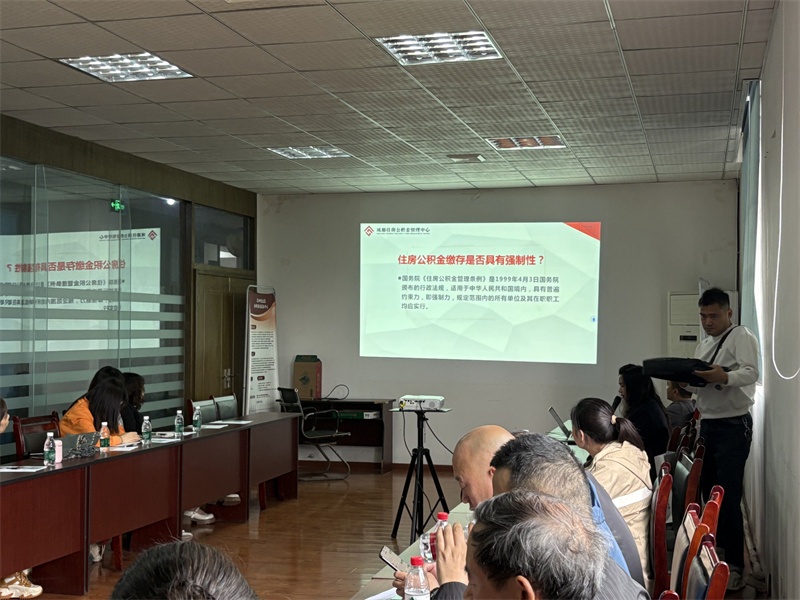 稍后,成都住房公积金管理中心新都服务部成老师为参会企业作公积金政策宣讲。他详细解读了缴存、提取及贷款新政,解答了企业关于成都住房公积金的相关疑问。这一举措进一步推动了惠民政策精准覆盖职工群体。