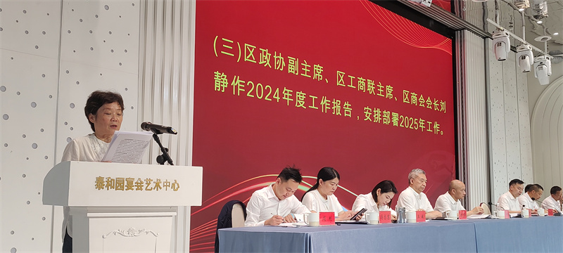 会上,区政协副主席、区工商联主席、区商会会长刘静作 2024 年度工作报告。报告全面回顾了过去一年区工商联在促进民营经济发展、服务企业、加强商会建设等方面所取得的成绩。在总结过往经验的基础上,刘静主席也对 2025 年工作进行了详细的安排部署,明确了新一年的工作重点和方向,旨在进一步推动郫都区民营经济高质量发展,助力企业解决实际困难,提升工商联的服务效能。