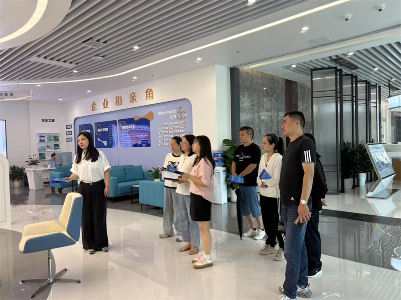 为深入学习考察我区深化政务服务增值化改革成效,了解我区工业企业服务领域最新营商环境站点建设成果,7月7日上午,四川鑫和实业有限公司党支部书记张群、园区经理白睿及园区亿隆包装、天博威科技、讯腾自动化、宏埸涂科技等企业的代表,在鑫和园区服务专员程鹏老师的带领下,前往郫都区高新技术产业园区企业服务中心进行了参观学习,体验“园区事园区办,企业办事不出园”高效服务点位建设情况。企业服务中心负责人杨婷婷老师接待了张书记一行,并对企业服务中心的相关功能进行了详细介绍。