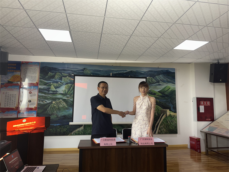会中,广汉市新鑫和投资有限公司与四川溱林食品有限公司签订合作协议,并合影留念。