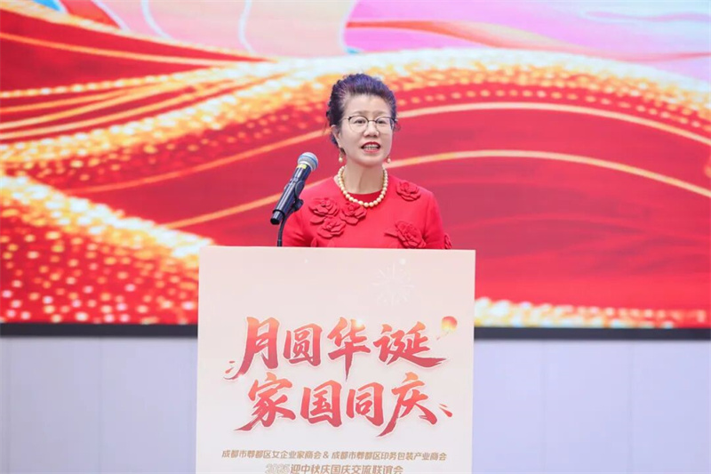 9月29日下午由郫都区工商联指导,郫都区女企业家商会&郫都区印务包装产业商会联合主办的“月圆华诞 家国同庆”——2025迎中秋庆国庆交流联谊会在紫御轩·惠宴举办。区政协副主席、工商联主席、总商会会长刘静到会并讲话,鑫和实业董事长、鑫和商会老会长杨德兵、鑫和商会秘书长张群受邀参会。