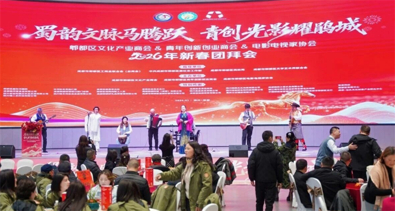 骏马嘶春,万象更新。1月23日,郫都区文化产业商会、青年创新创业商会与电影电视家协会首度携手,在紫御轩·惠宴隆重举办“蜀韵文脉马腾跃·青创光影耀鹃城”2026新春团拜盛会。四川鑫和实业董事长杨德兵、鑫和创业园商会秘书长张群、四川鑫和书画院院长秦大川应邀参会。